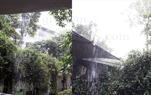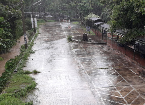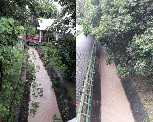 หลังที่ฝนหยุดตก น้ำฝนไหลลงสู่ทางระบายน้ำ...ทางระบายน้ำที่พบอยู่ทั่วไปใน มช.