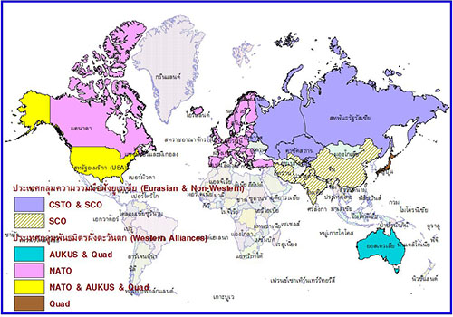 อินเดีย เป็นประเทศเดียวที่อยู่ทั้งใน กลุ่มพันธมิตรตะวันตก (Western Alliances) และ กลุ่มความร่วมมือฝั่งยูเรเซีย (Eurasian & Non-Western)